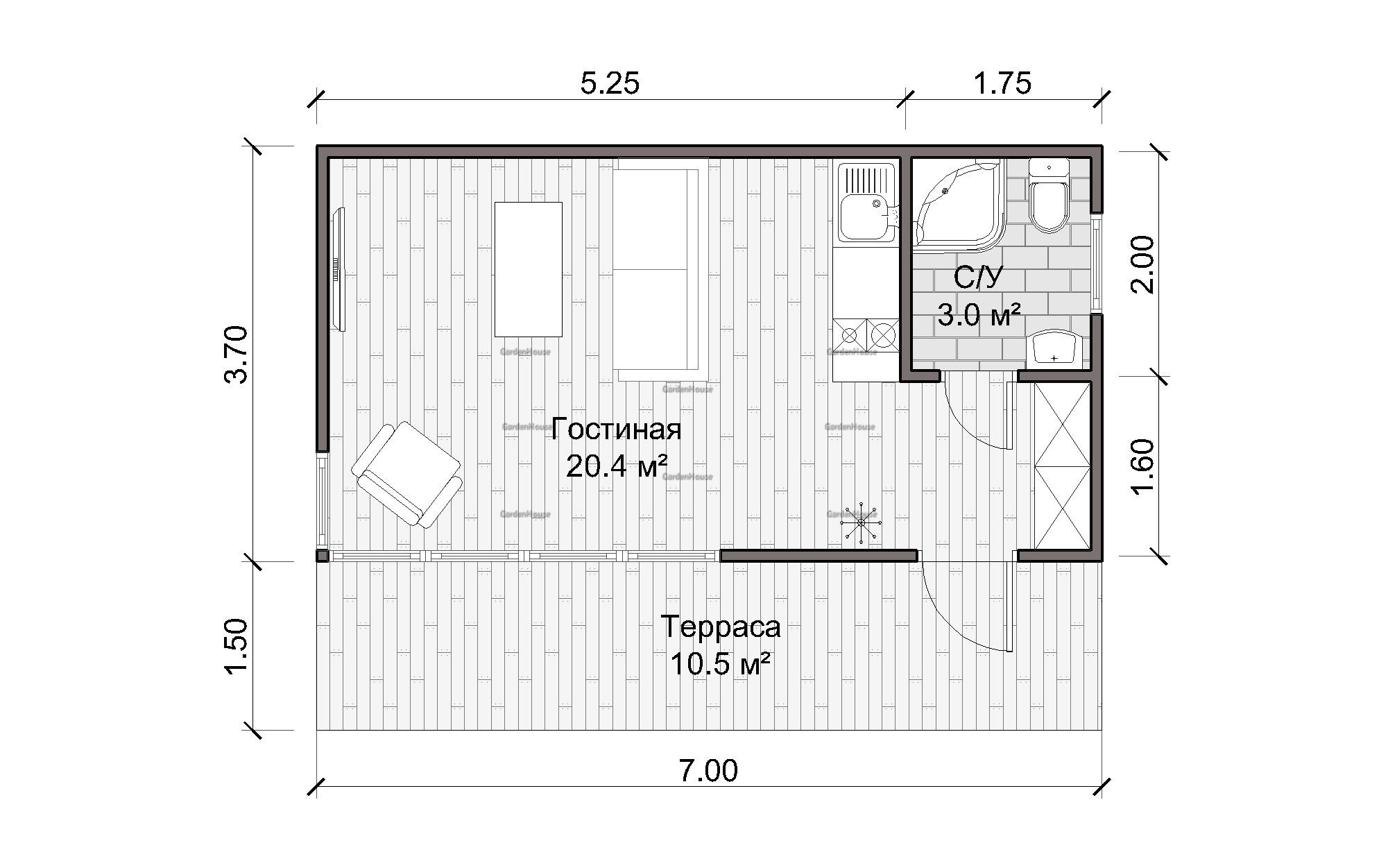 Общая/жилая площадь | 26,55/20,4 м2 |