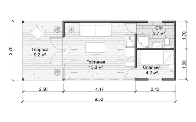 Проживание рабочих | Заказчик должен обеспечить условия для проживания рабочих на участке. В случаи если такие условия обеспечить невозможно, то заказчик должен приобрести бытовку для проживания рабочих. Бытовка 3х2 метра, стоимость 5 миллионов рублей. По завершении строительных работ, бытовка остаётся на участке, которую можно использовать как хозблок. |