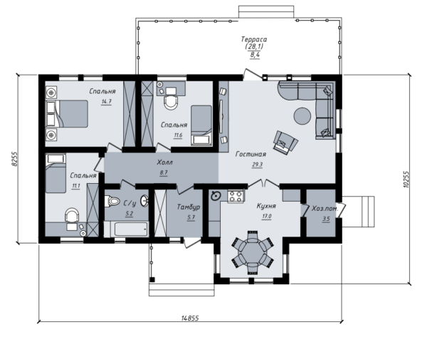Перегородки: | Стойка — доска тех. сушки строганная 45х95 (обработка антисептиком LignoFix Stabil Extra на производстве);