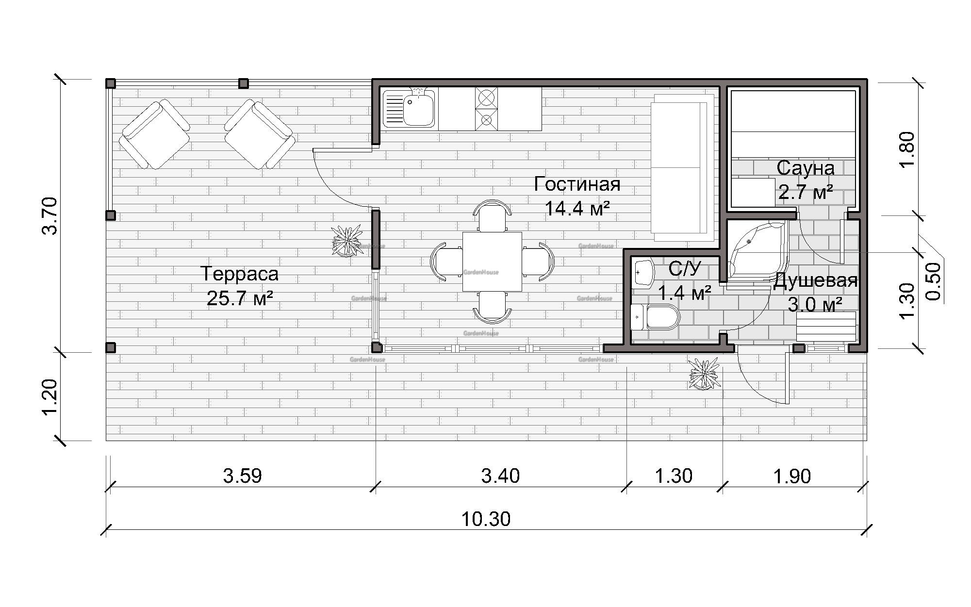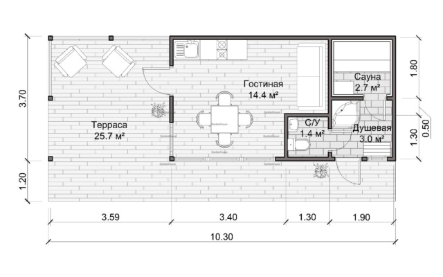 Терраса: | Лаги — брус 45х200 мм строганный, тех. сушки (обработка Neomid 435-ECO на производстве);