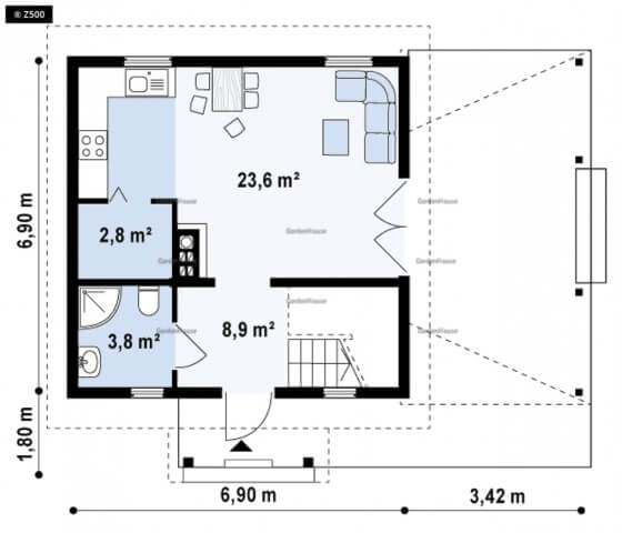 Терраса: | Лаги — брус 45х200 мм строганный, тех. сушки (обработка Neomid 435-ECO на производстве);